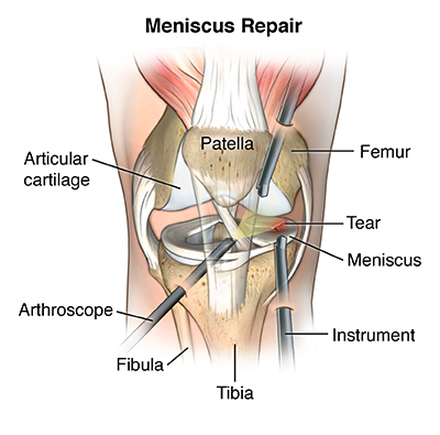 - Exercises, medicine, and arthroscopy may be used to treat a torn meniscus.